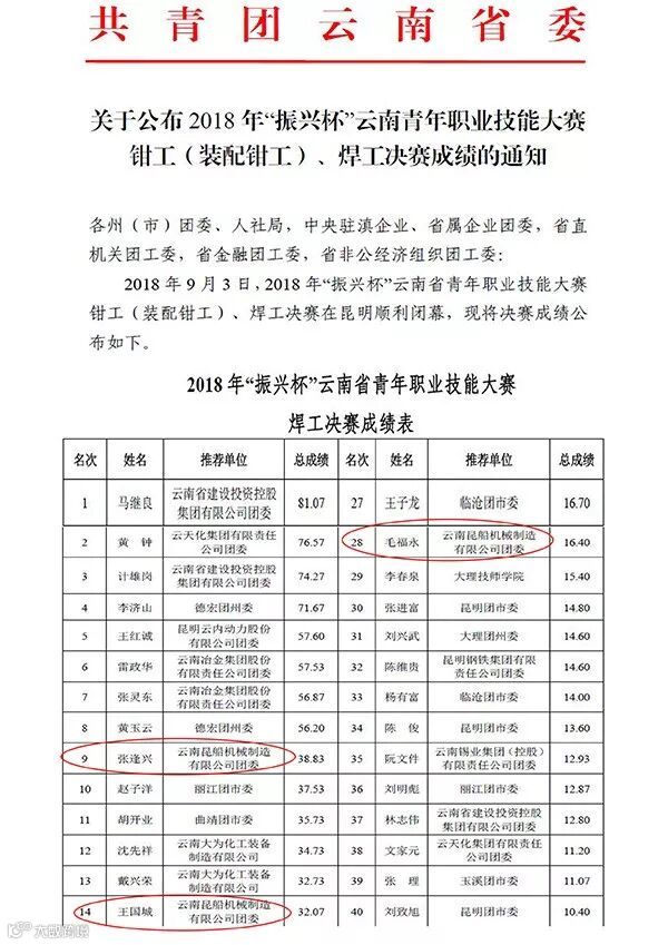 (4)组织青年钳工、焊工参加了团省委主办的云南省“振兴杯”技能大赛,其中一名青年进入云南省前十名。