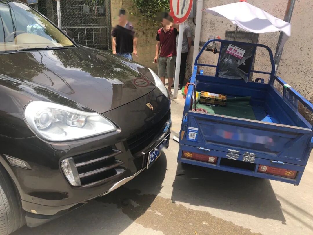 作为快递员,每天穿梭在城市的大街小巷,轻微剐蹭等交通事故时有发生。巧的是周四我们就收到这样一个报案,一辆三轮车撞上了一台法拉利。