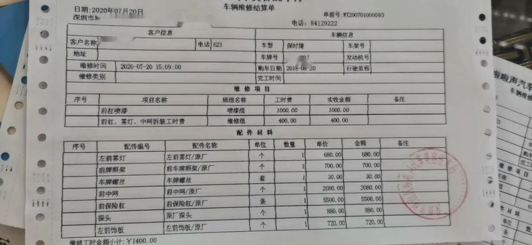 这次事故的修理费用1万出头,所幸购买了我们的快递员三责险种,免赔10%,保险公司承担9000多元的赔付。如果未购买保险,可能一两个月的工资都得贴进去。