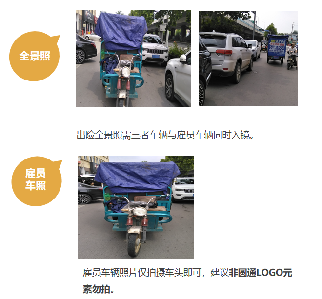 4、雇员电动三轮车车头照片。(勿将非圆通速递的logo入镜)