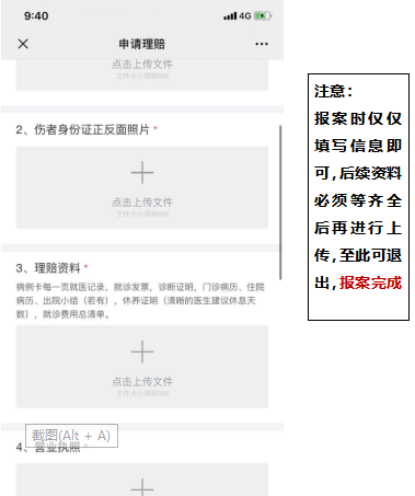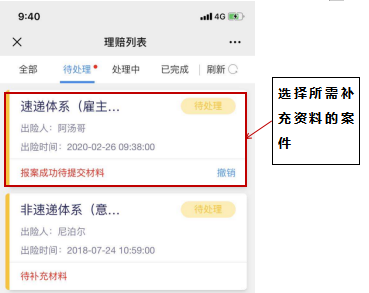 2) 完成线上报案及提交理赔资料,等待保险公司审核,理赔进度会登录【个人中心】查询。若审核后资料不符或缺失,则需补充相应材料后再行上传,审核完成后可寄出资料给保险公司,邮件地址请到行者保公众号内看保险理赔流程,根据地区的不同选择邮寄地址。