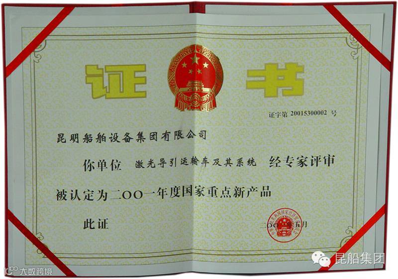 2001年,“昆船自动导引运输车及系统”被列为国家重点新产品。