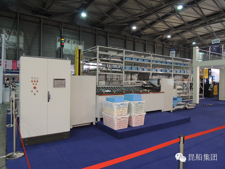 由昆船公司最新研发的“货到人”拣选系统和三向叉式AGV参加了本届展会。“货到人”拣选系统在展会上展示了电商行业B2C流程。当上位计算机接收到订单拣选指令后,进行订单排序,多层穿梭车将排序好的库存周转箱依次输送至出库站台,由高速件箱提升机和辊道机组成的输送系统会及时地将库存周转箱输送至人工拣选工作站,拣选工人根据电脑提示进行订单拣选流程。高效的自动化系统及合理的拣选流程极大的提高了拣选效率,每个拣选工人拣货可达1000件/小时。拣选完成的库存周转箱通过输送系统回到隔板货架存储区等待新的拣选流程开始。系统包含存储、拣选两个功能区,包含GAG143型积放辊道输送机,SGV11型辊道输送机,SGV12型弯道辊道输送机,BZF108轻型多层穿梭车,GMD707垂直提升机,TQP22人工拣选工作站,GNT105升降输送机,TSM12条码识别器等设备。