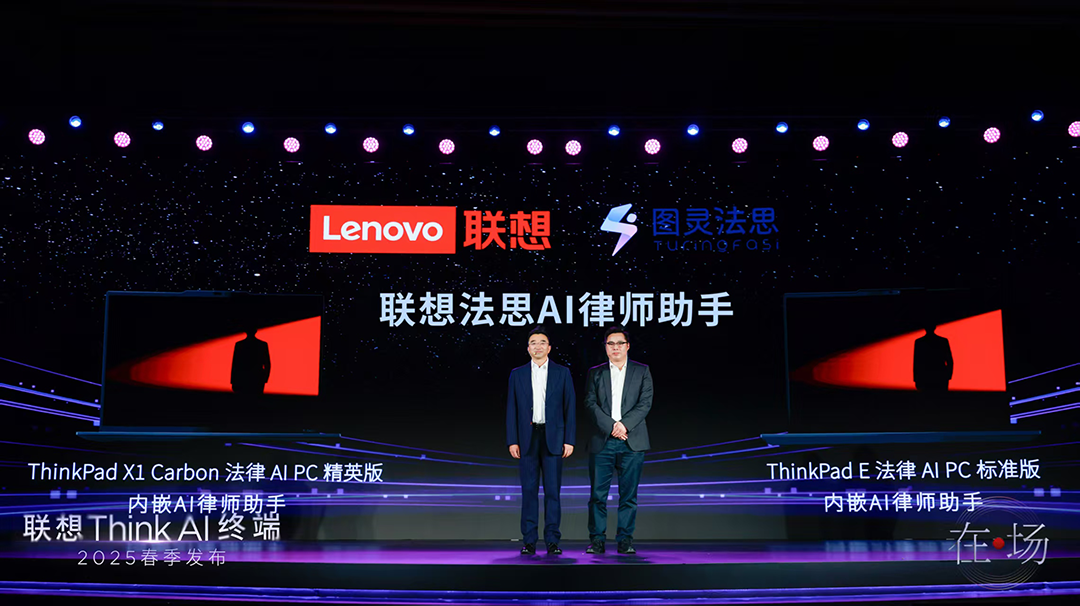 联想集团副总裁、联想中国中小企业业务群总经理王忠和生态合作伙伴图灵法思CEO强锋共同发布“联想法思AI律师助手”,旨在将前沿AI技术应用到法律服务领域,帮助每一位法律人展现专业价值,始终“在场”。