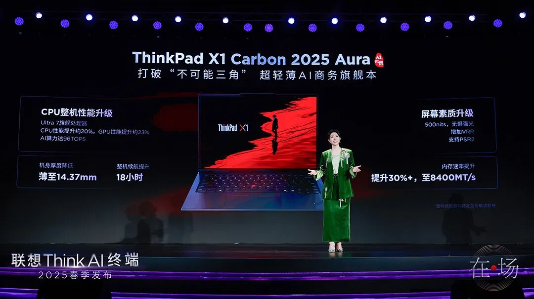4月28日,主题为“#在场 ”的联想Think AI终端2025春季发布会在联想北京全球总部举办。会上,联想发布了多款内嵌天禧个人超级智能体的AI终端新品,包括ThinkPad X1 Carbon 2025 Aura AI元启版、ThinkPad T14p 2025 AI元启版、ThinkPad P14s/P16s 2025 AI元启版、ThinkPad E14/E16 2025超能版、设计师系列ThinkBook 16p 2025 AI元启版、ThinkCentre neo Ultra 2025 AI元启版等AI PC。以及联想thinkplus智会会议方案和AI PC伴侣thinkplus锋行者大功率移动电源140W也亮相现场。联想Think AI终端,旨在为不同商用场景的用户提供无缝联接的AI办公体验。