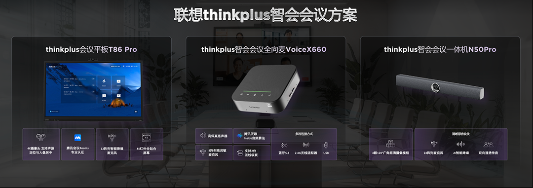 此外,张豪还介绍了为AI办公全场景打造的联想thinkplus智会会议方案和“AI PC伴侣”thinkplus锋行者移动电源。作为联想thinkplus智会会议方案核心,thinkplus会议平板T86 Pro搭载了4K超清摄像头和声源定位技术,让会议室的每个角落都能清晰可见、可听,智慧白板功能支持多人实时协作,内容可智能转换为会议纪要;thinkplus智会会议全向麦VoiceX660拥有8颗高敏麦克风组成的智能阵列,6米半径内不遗漏任何方向的观点表达;thinkplus智会会议一体机N50Pro集4K高清拍摄、智能导播、专业拾音于一身,且自带智能美颜,让你时刻保持商务精英形象。“AI PC伴侣”thinkplus锋行者移动电源拥有140W大功率快速充电功能,轻巧设计让你告别沉重充电头,轻松出行。