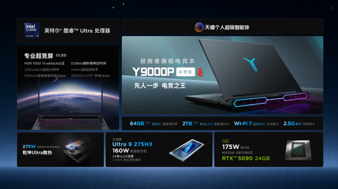 联想拯救者品牌以十年技术积淀再度颠覆性能边界,携多款新品强势登场。全新拯救者Y9000P 2025以“六边形战士”之姿,搭载革命性乾坤散热架构,至尊版性能释放跃升至275W。其搭载的16英寸OLED专业超竞屏斩获业界首个HDR 1000 TrueBlack认证,配合移动端顶级CPU/GPU、PCIe5.0固态及Wi-Fi7网络,打造出联想最强AI PC视觉与性能体验。