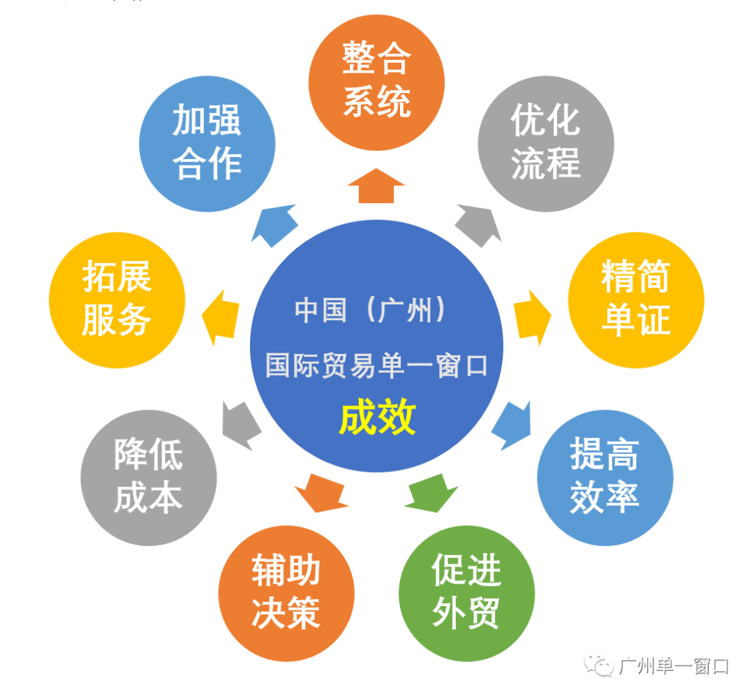 中国(广州)国际贸易单一窗口(以下简称广州“单一窗口”)作为市政府主导的公益性公共服务平台,为广州地区国际贸易和运输企业提供统一的信息处理公共服务。用户通过“单一窗口”一点接入、一次性提交满足口岸管理和国际贸易相关部门要求的标准化单证和电子信息,相关部门通过“单一窗口”共享数据信息、实施职能管理,处理状态(结果)通过“单一窗口”统一反馈。
