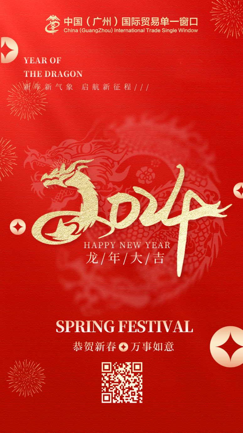 感谢大家一直以来对中国(广州)国际贸易单一窗口的支持、信任和关注。值此春节来临之际,祝愿:春节快乐!身体健康!万事如意!