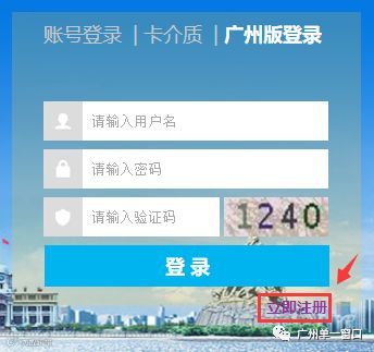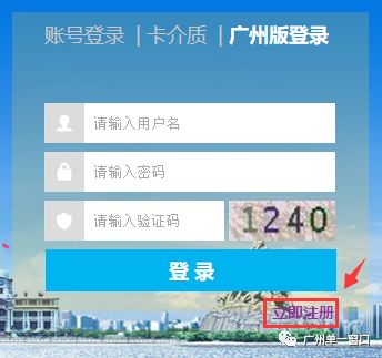 进入系统以后切换到【广州版登陆】窗口,点击【立即注册】按钮。