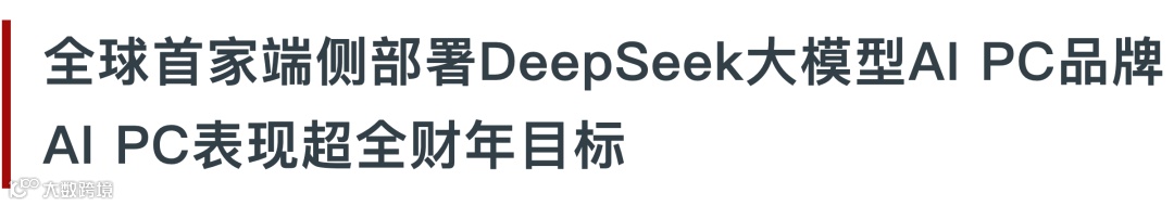 在沟通会上,刘军特别预告了联想的进一步动作。2月25日,联想将进一步升级天禧AS,率先在端侧部署DeepSeek 70亿参数(7B)大模型,“使得联想AI PC的能力获得非常大的提升”。