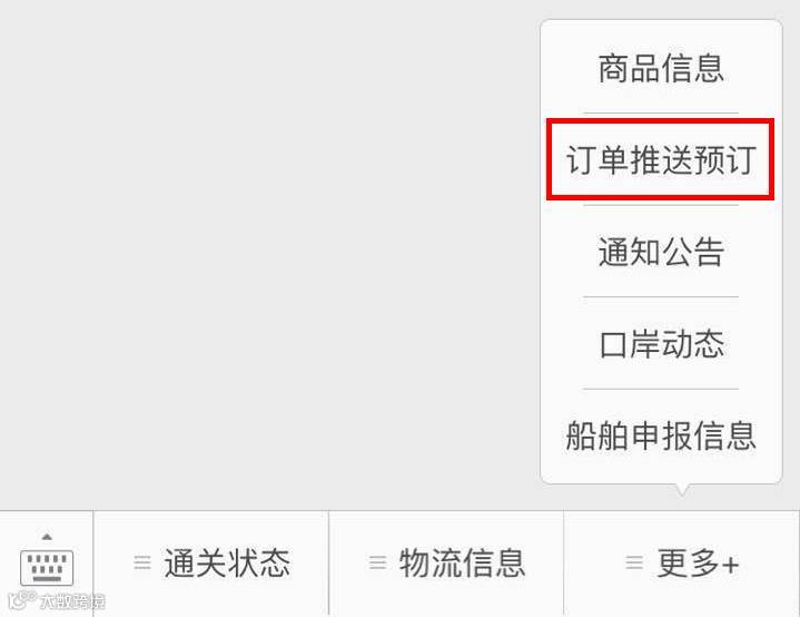 为方便企业操作,系统提供了订阅功能。根据企业订阅的提单号或箱号,只要货物的通关状态更新,企业会立刻收到提醒信息。在菜单栏的“更多”里选择“订单推送订阅”,发送【TDDY#进出口标示(I-进口,E-出口)、提单号】即可订阅提单;发送【XGDY#进出口标示(I-进口,E-出口)、箱号】则订阅箱柜。