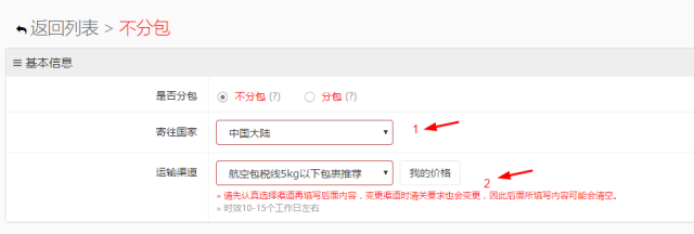 1.填写基本信息:寄往国家和运输渠道!