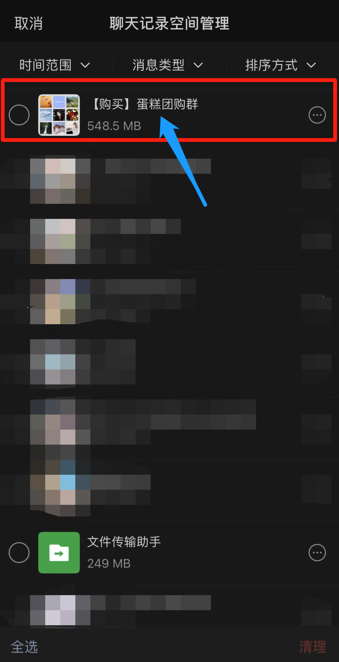 打开微信—我—设置—通用—存储空间—聊天记录管理—进择文件对应联系人—右侧省略号图标—找到文件-打开保存。