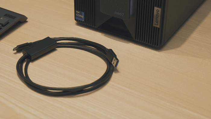 与联想ThinkCentre neo P780配套的,还有一根Smart Cable智能线缆,这个功能的设计让对效率迫切渴望的英麒感到非常惊喜。