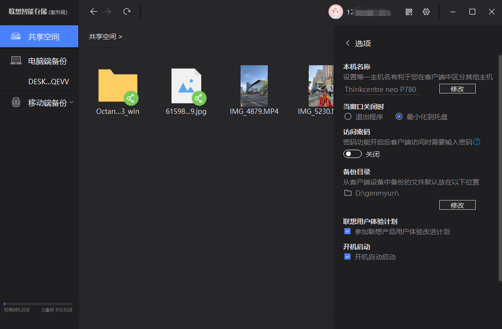该功能将联想ThinkCentre neo P780当作了一个本地的存储设备,存储其中的内容和数据,其他用户可以通过下载联想智能存储应用(PC端、移动端都有)来进行访问、读取、共享等操作。