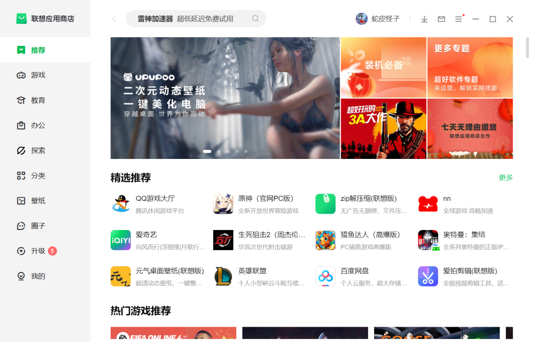 完成了电脑的基础设置,还想给电脑下载一些基础软件要去哪下?直接使用搜索引擎下载,恶意软件捆绑太多了,而且还容易下到病毒!其实,在联想电脑管家的软件商店中搜索下载就可以了。