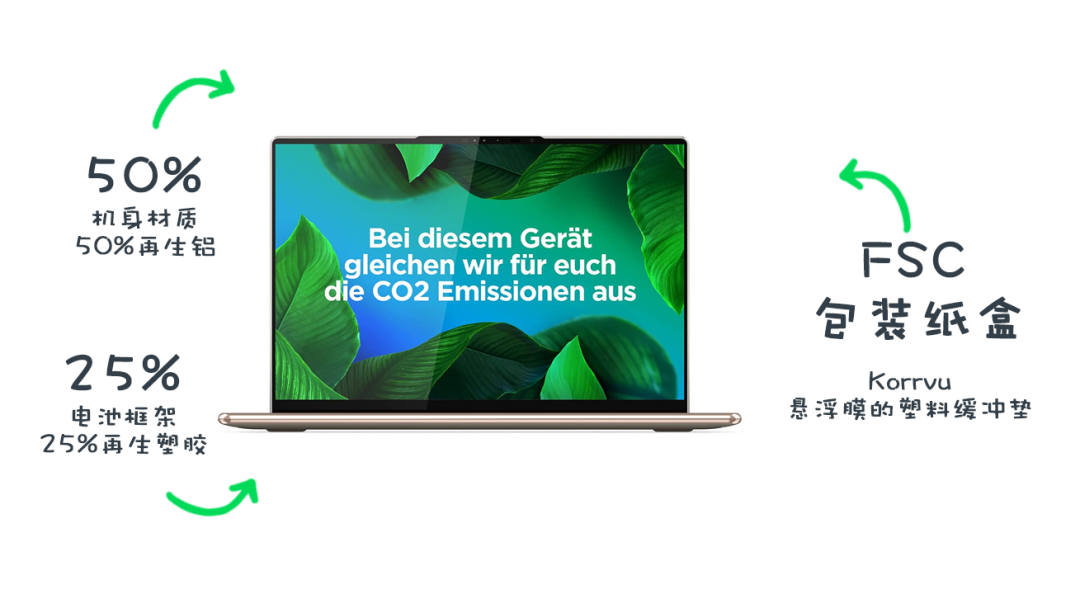 机身材质采用50%再生铝和电池框架中25%再生塑胶