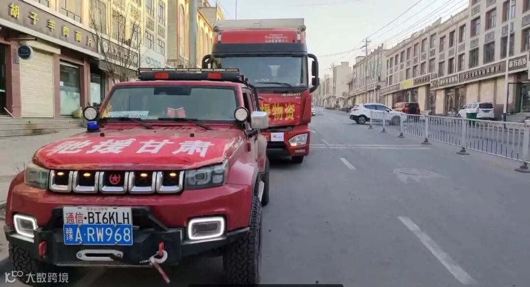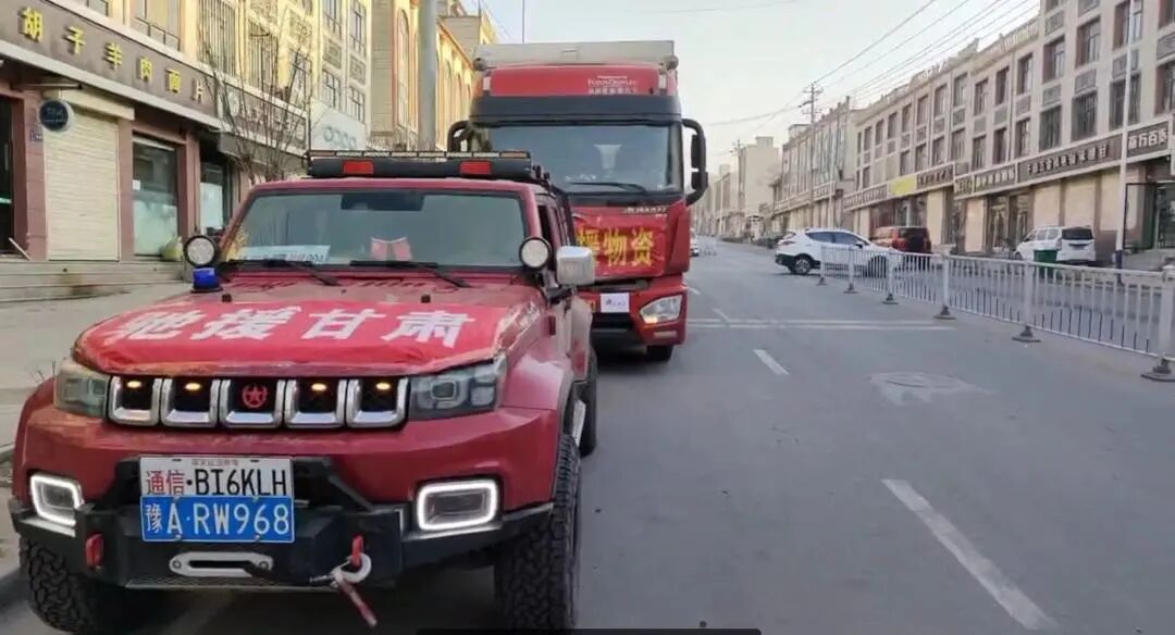 ▲12月21日16:33分,四季安物流联合郑州市中州应急救援队抗震救灾运输车队抵达积石山县震区