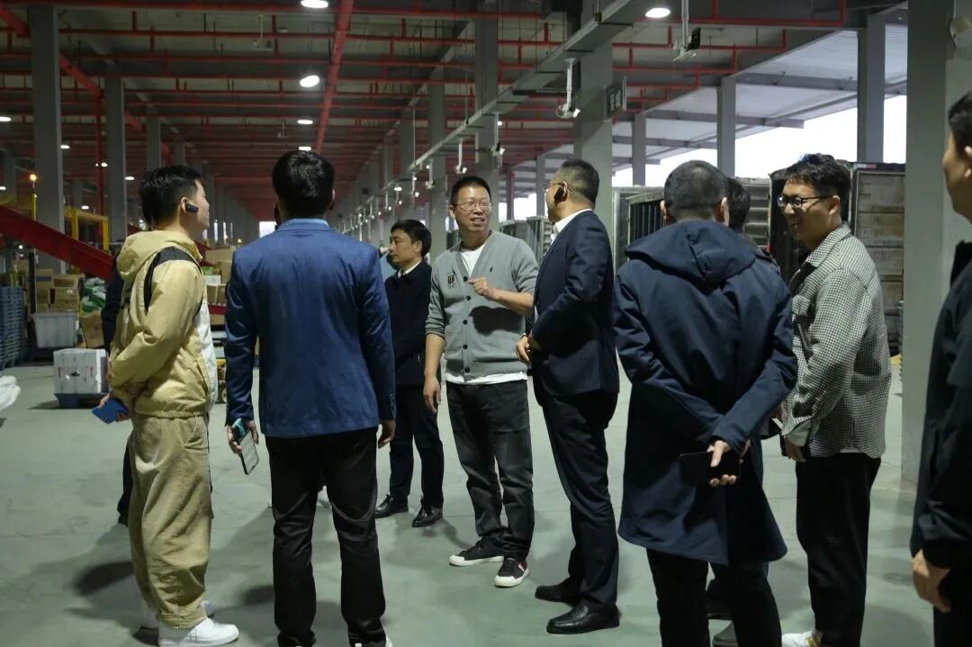 下午5时30分,在集团总裁潘向锋的陪同下,校领导、校友一行深入分拨中心,分别对中心卸车平台、六面扫描机、单件分离机、中央控制系统、摆轮滑槽、连廊文化等进行考察观摩。