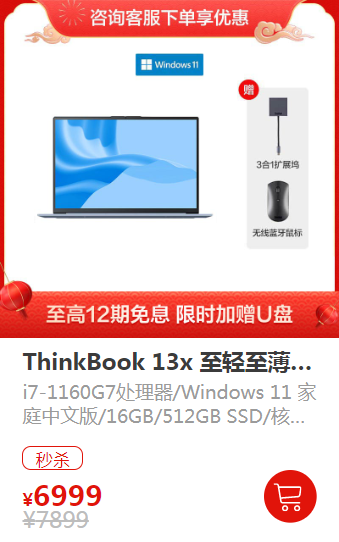 导读:小新pad pro12.6平板电脑、ThinkBook13x冰雪蓝送不停