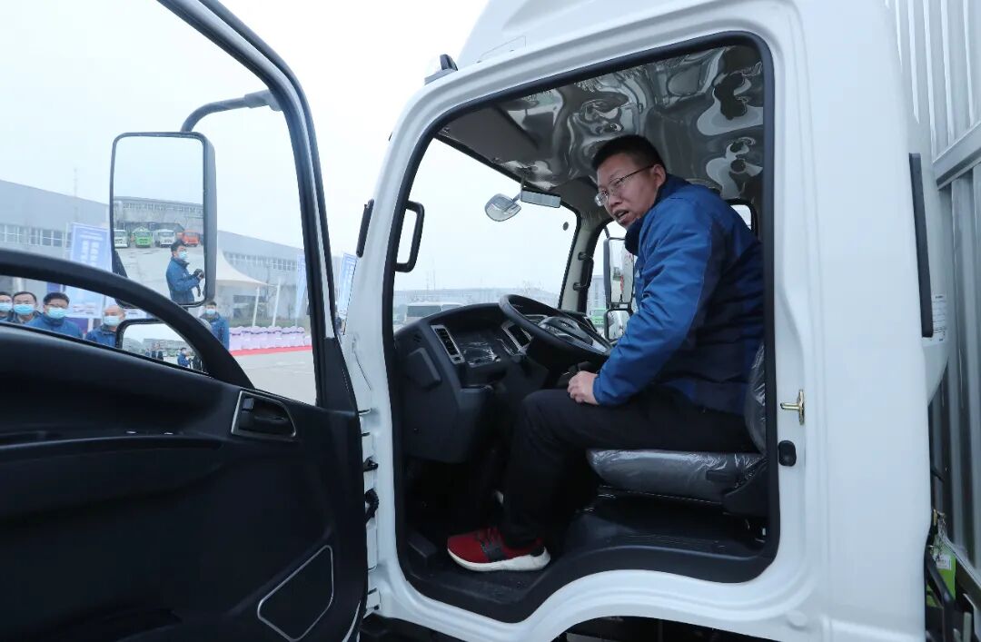 交车仪式现场,20台印有四季安物流标志的宇通纯电物流车一字排开,气势恢宏。交车前,受宇通轻型商用汽车公司副总经理张涛的邀请,集团总裁潘向锋等领导登上宇通纯电物流车驾驶舱,亲自试驾并体验了宇通纯电动物流车的驾驶感受和各种新型功能的操作情况。