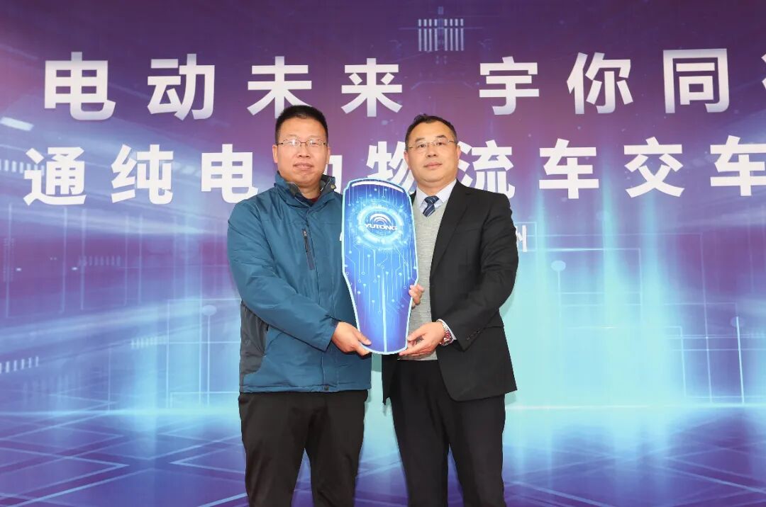 随后,在与会领导们的共同见证下,宇通轻型商用汽车张总将代表着达到交付标准的“车钥匙”交付到集团总裁潘总的手中。标志着宇通首批纯电物流车正式交付四季安物流!