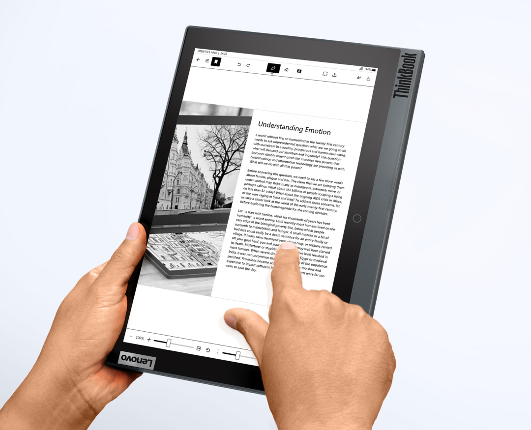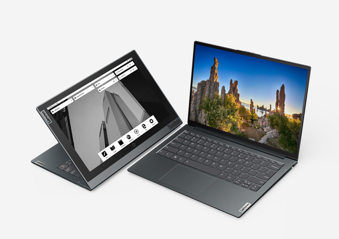 ThinkBook Plus 2作为一款非常适合潮流达人和设计师所使用的“生产力工具”,其搭载了一块12英寸的E-ink电子墨水屏,有着更接近纸张的显示效果,适合长时间使用。即使在阳光强烈的环境下,也能为用户带来惬意的阅读体验。对于设计师而言,这款笔记本电脑产品所具备的双屏协同功能可谓十分实用,仅需轻轻一翻,就能将A面的工作界面转到B面,在第十一代英特尔酷睿处理器的驱动之下,带来高效流畅的设计体验。
