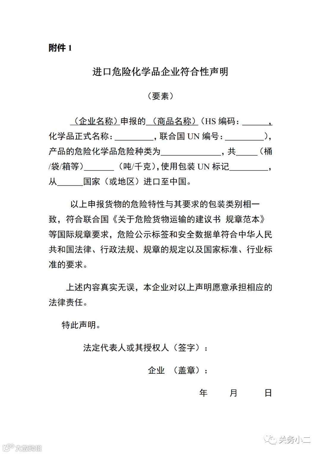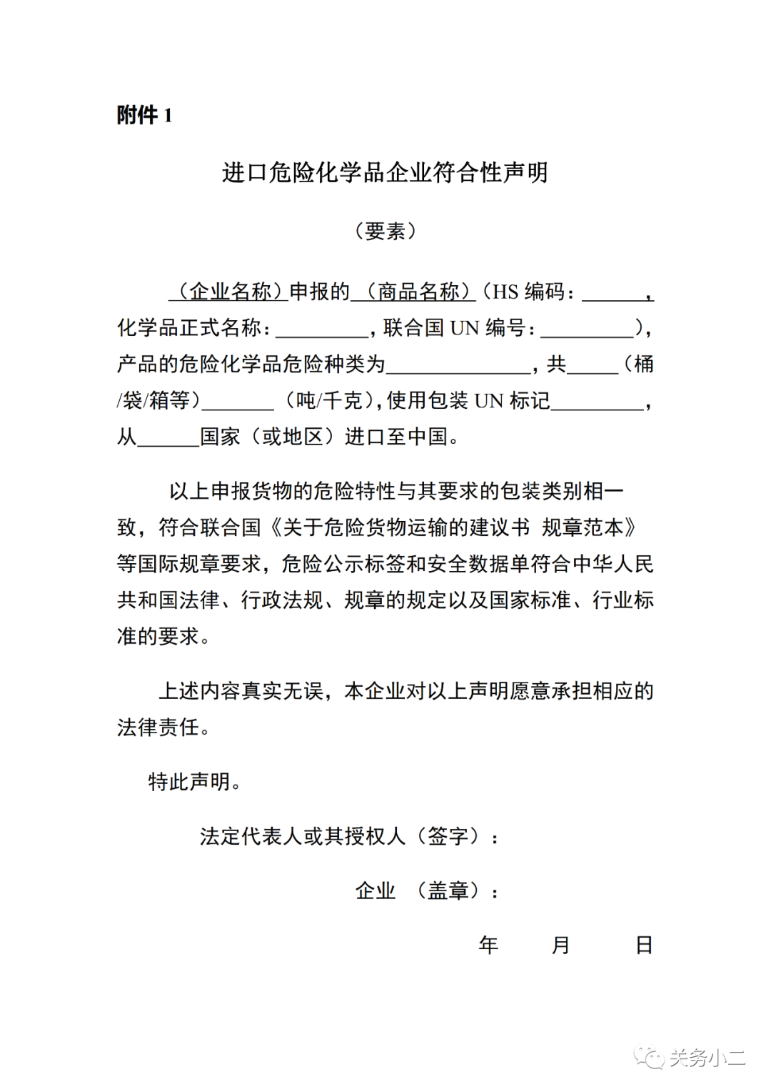 (一)《进口危险化学品企业符合性声明》(样式见附件1);
