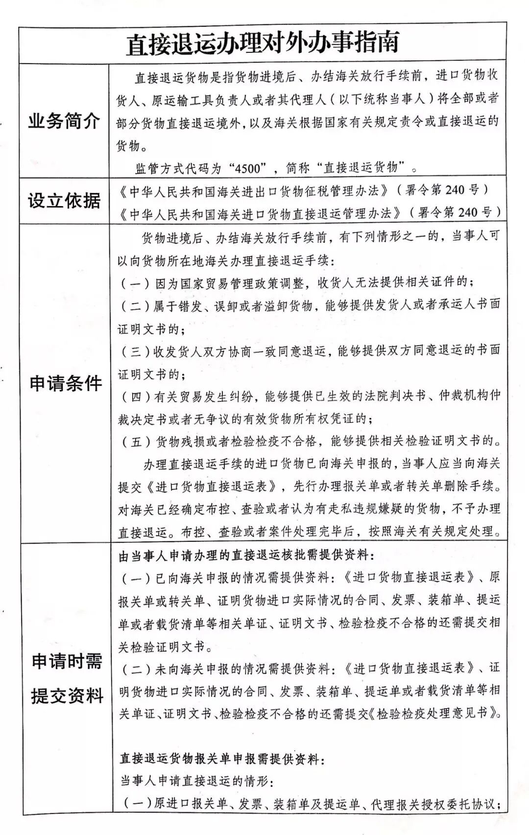 1.直接退运的货物,海关不验核进出口许可证或者其他监管证件,免予征收进出口环节税费及滞报金,不列入海关统计。