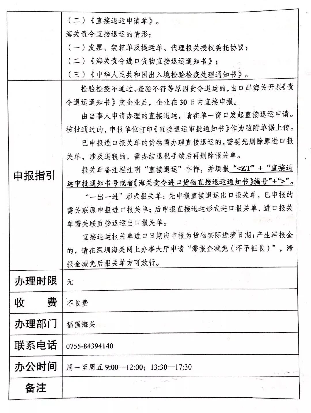 (二)“备注”栏填写《进口货物直接退运表》或者《责令直接退运通知书》编号。