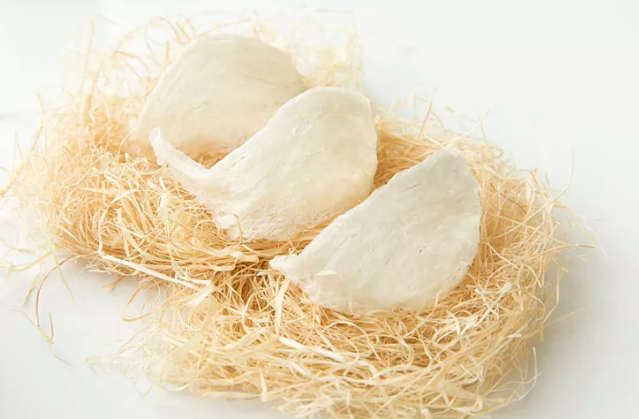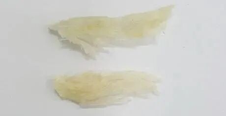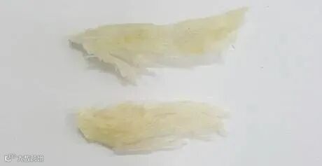 看产品性状,燕窝一般为白色,略带一股鸡蛋清气味。