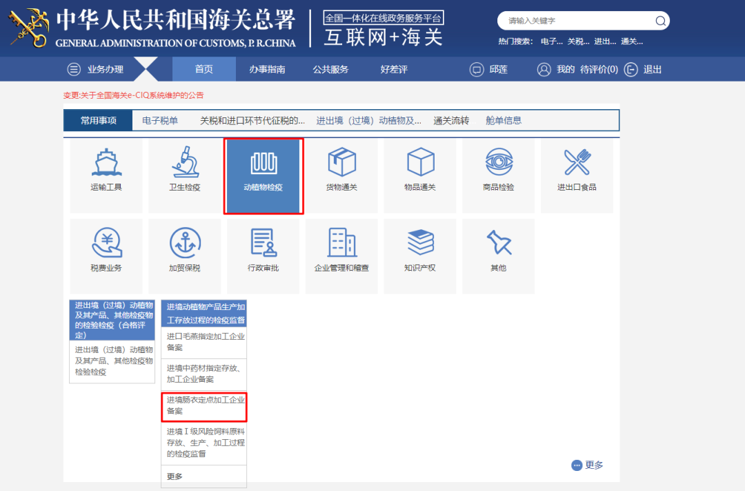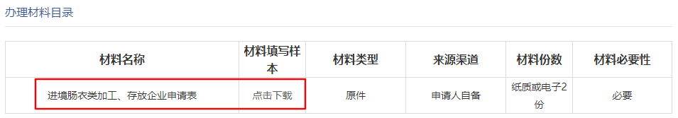 申请表下载地址:“互联网+海关”主页——办事指南——输入“肠衣”查询