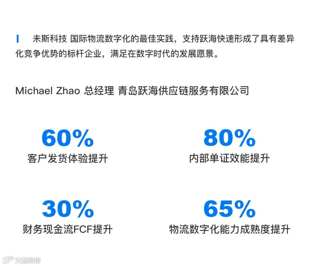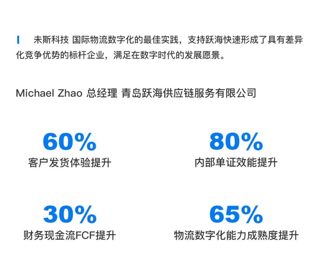 未斯科技在国际物流行业拥有丰富的最佳实践,支持跃海持续、快速成长