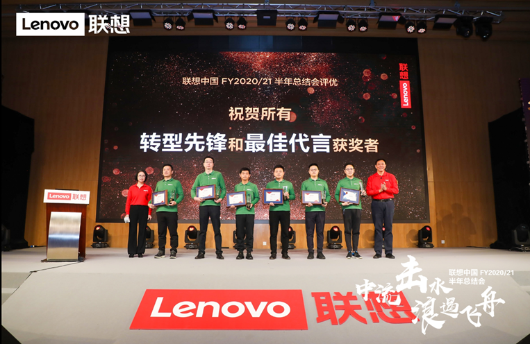 半年总结会上,联想对获得“转型先锋”奖、“最佳代言奖”的优秀员工以及“王牌战队”进行表彰。