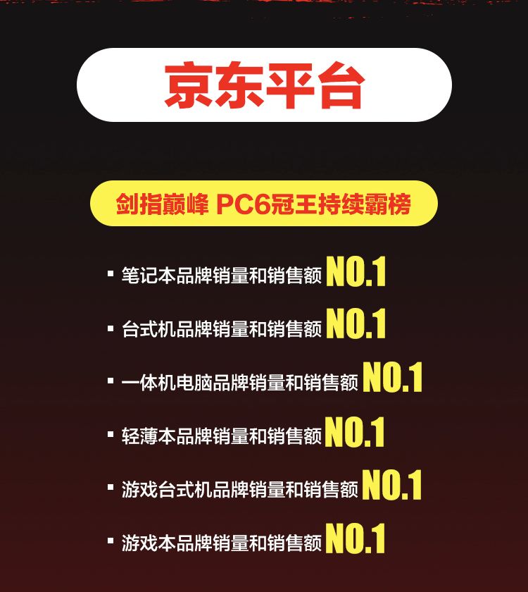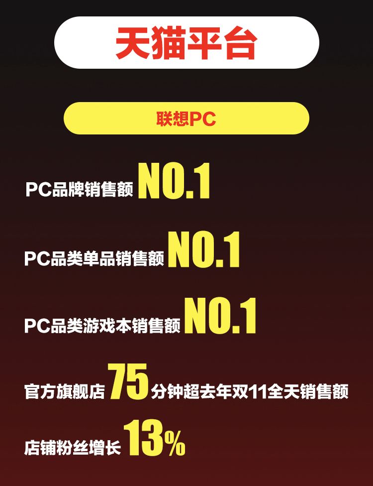 联想电脑拿到了PC品牌销售额、单品销售额和游戏本的第一名