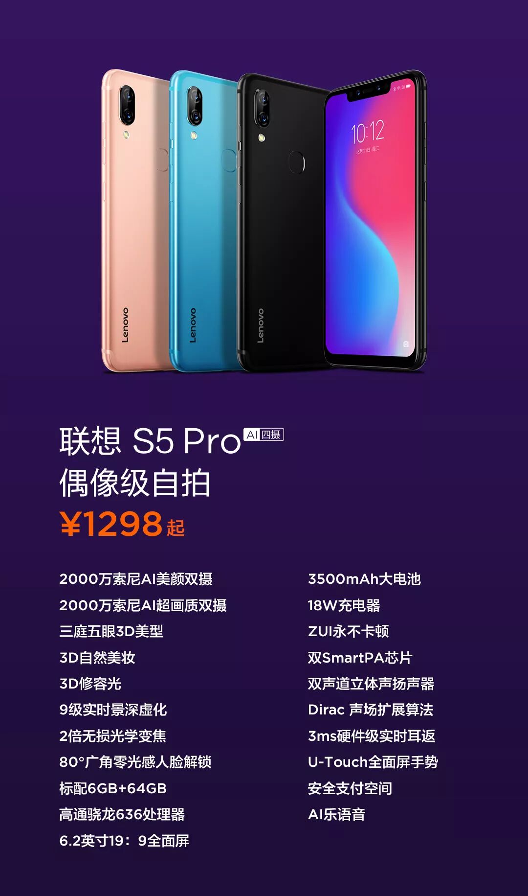 这是继联想Z5新国民旗舰之后的又一力作,针对拍照性能进行了开挂式的优化,先看参数:前后2000万AI四摄,后置2000万索尼AI超画质双摄,这样的配置号称d,偶像级自拍一点不为过,让我们来感受一下联想S5 Pro的打开方式。