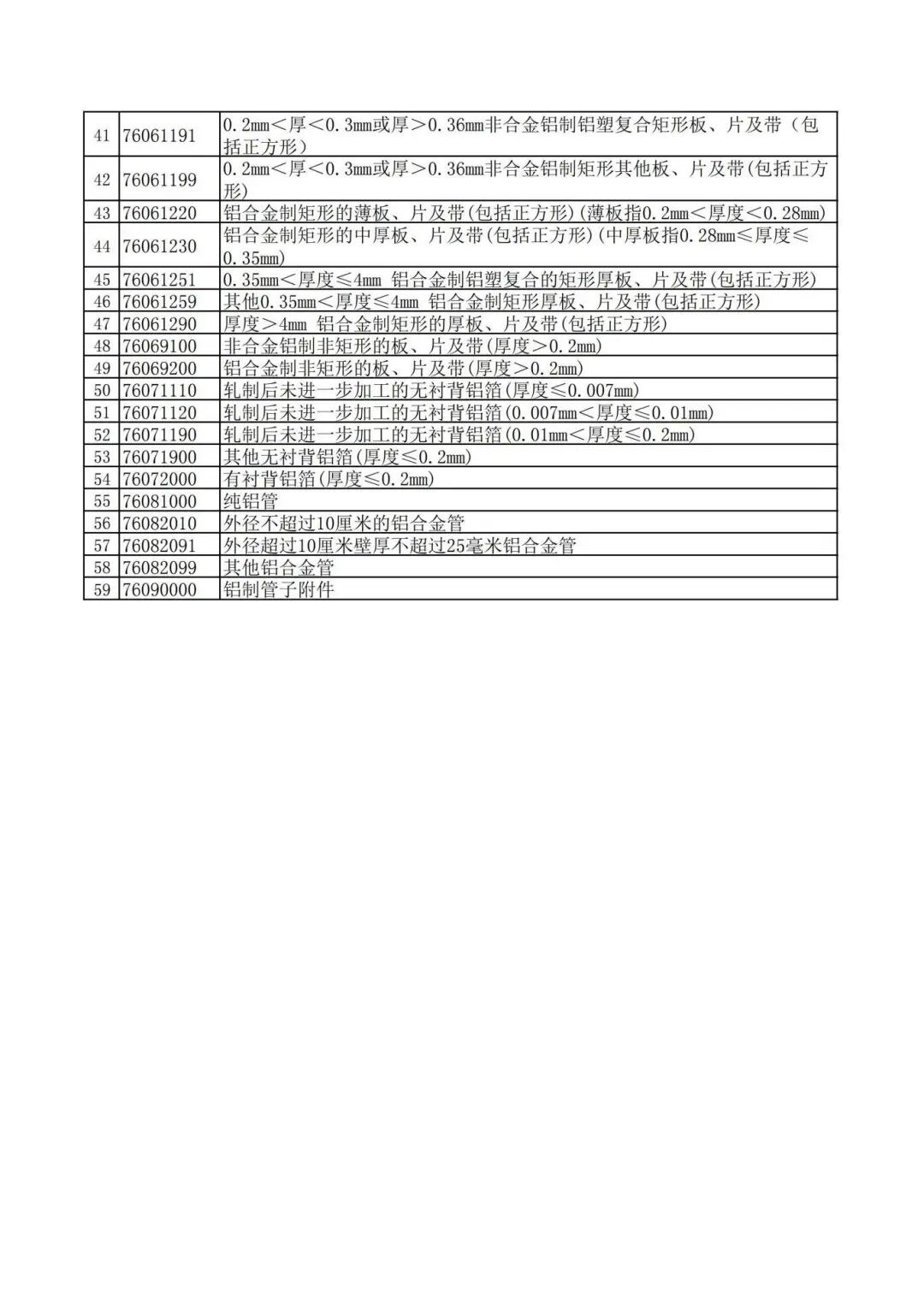 现就调整铝材等产品出口退税政策有关事项公告如下: