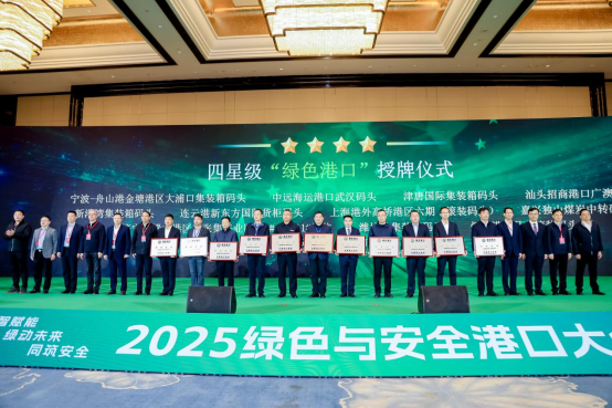 2025中国港口协会绿色与安全港口大会上,连云港货柜码头斩获“四星级绿色港口”称号,这是公司多部门协同的成果,更是对其践行“绿水青山就是金山银山”理念的肯定。
