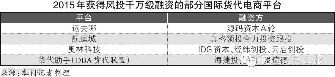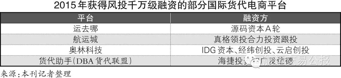 不仅是大型货代企业已经具备了互联网思维,中小型货代企业也已看到这种发展趋势。据不完全统计,当前中国具有一定规模的货代电商平台已过百家,其中数十家已获得各路资本的青睐。