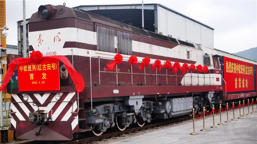 龙岩地处闽西南经济协作区,是扩大厦门港辐射影响力向着江西、粤北等内陆地区纵深推进的桥头堡,凸显厦门港“一带一路”陆海连接枢纽的地位,意义重大。闽西首列“红古田号”中欧班列于4月29日顺利开通,列车经由满洲里(绥芬河)出境,在俄罗斯的后贝加尔口岸进行换装,途经新西伯利亚,叶卡捷琳堡,终点是俄罗斯的莫斯科,全程10747公里,预计用时15天左右。本次计划发运50个40英尺集装箱,搭载货物主要有生活日用品、婴幼儿用品、电子产品、健身器材等,总货值超220万美元。此次班列开行将对龙岩革命老区加快融入“一带一路”建设,拓展国际物流新通道,建设高质量发展示范区具有重要意义。