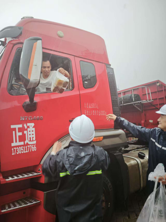 在这风雨交加的危急时刻,公司供应链开发部的员工迅速行动起来。他们秉持公司“聚焦客户需求,服务创造价值,提供优质服务”的理念,第一时间将温暖送到了滞留司机的心坎上。当天临近下班时,供应链开发部立即组织人员为滞留的货车司机订购了热乎的盒饭,并冒雨将一份份热腾腾的饭菜送到司机手中。