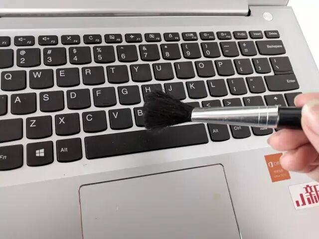 使用皮吹、毛刷进行键盘缝隙大颗粒灰尘的清洁。
