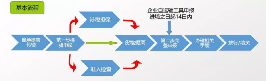 1.企业凭提单信息,提交口岸安全准入申报需要的相关信息,进行“概要申报”。如果货物不需要进一步查验,就可以马上放行提离。涉税的货物,在提供了税款担保以后,也可以放行提离。