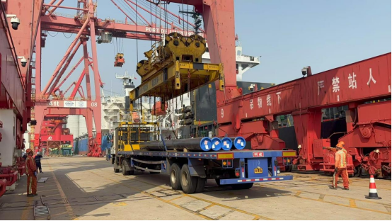 为保障项目高效安全推进,公司供应链开发部牵头,联合操作部、安全管理部、技术管理部等多部门提前规划,对钢管进场到装船的全流程进行细致安排。各部门紧密配合,优化作业流程,严守安全底线。作业期间,公司与客户保持高频沟通,实时掌握船舶动态,精准衔接各个环节,凭借专业高效的服务获得客户高度赞誉。