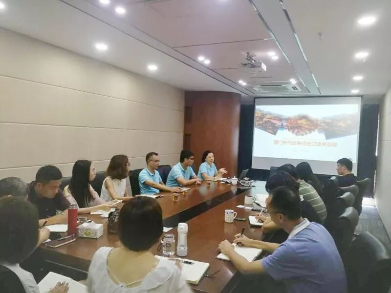 此次拜访,我司领导受到了厦门港口商务资讯有限公司黄轶达副总经理的热情接待,双方就企业内部培训、文化建设等宝贵经验进行了交流。为了让客户更全面地了解、掌握进出口货物通关的操作流程及相关知识,我司从进出口清关流程、进出口报检知识、查验流程等方面做了详细的介绍,得到了客户的一致好评。除此之外,双方人员还就实际工作中碰到的问题以及企业信用管理、关检合并等热点话题进行了深入的交流。会后,厦门港口商务资讯有限公司的领导对我司的专业度及日常配合服务给予了高度评价,并希望能在今后的工作中有更加密切的交流与合作,及时解读海关的新政策,更好地服务广大客商。