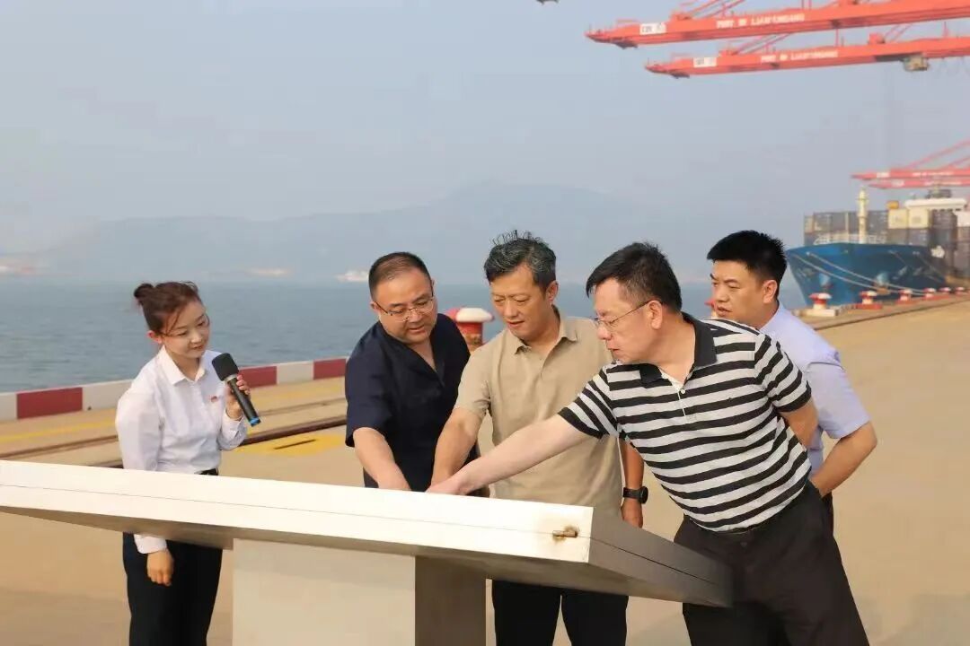 朱涛一行在连云港集装箱码头、新亚欧大陆桥东端起点,听取了连云港港发展历程、规划分布、航线布局等情况介绍,现场了解了智能化集装箱码头建设情况,并与连云港港口控股集团围绕后续加强互联互通,深化港航合作展开交流。