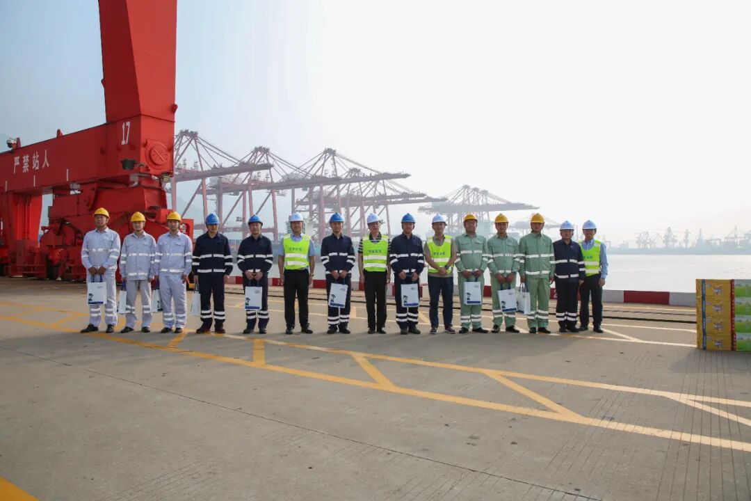 中远海运港口总经理助理陈栋,董事会办公室/人事行政部相关负责人,CSP连云港货柜码头负责人陪同调研慰问。