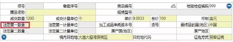 进出口货物按《中华人民共和国海关统计商品目录》中确定的法定第一计量单位,填报对应的法定第一数量。