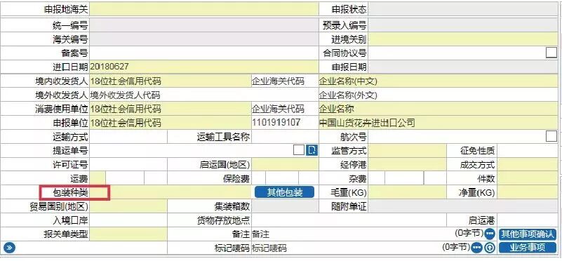 该项目为原报关项目的“包装种类”和原报检项目的“包装种类(含辅助包装种类)”,现合并为“包装种类”。